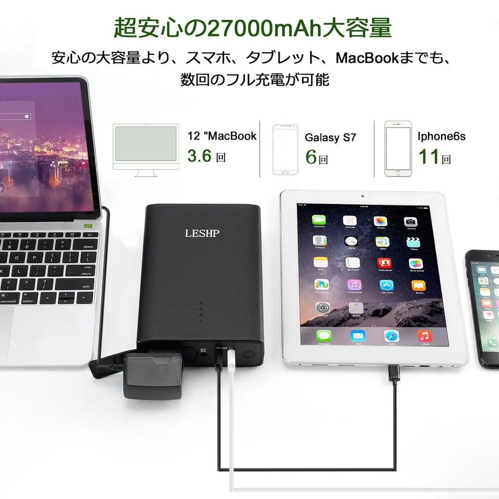 27000mAh Portable Power Bank Travel Charger Built-in AC Output Dual USB LED Indicator For Macbook L