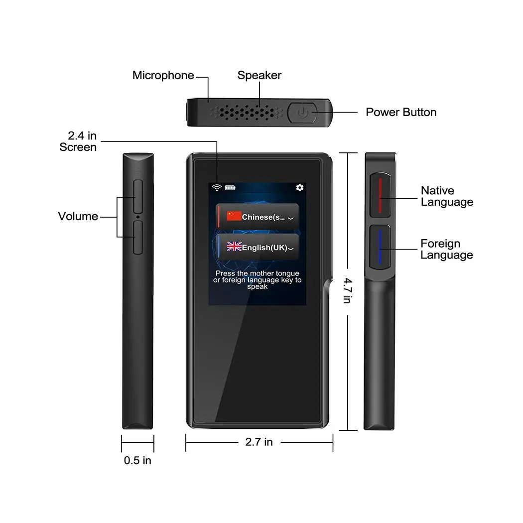 Translator 2.4 Screen Support 70 Languages Smart Voice Travelling Abroad Learning Shopping Business