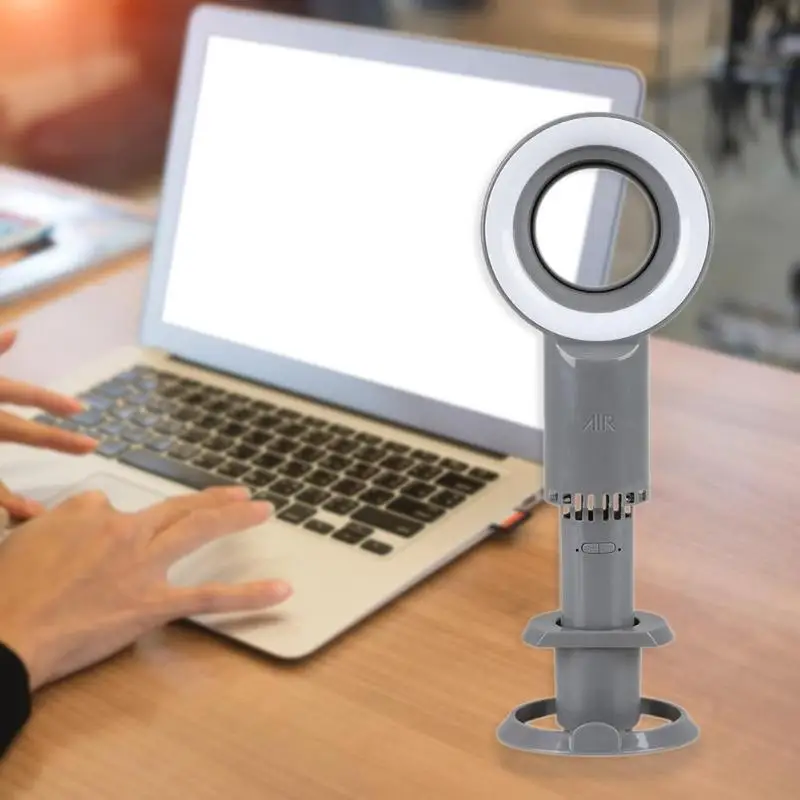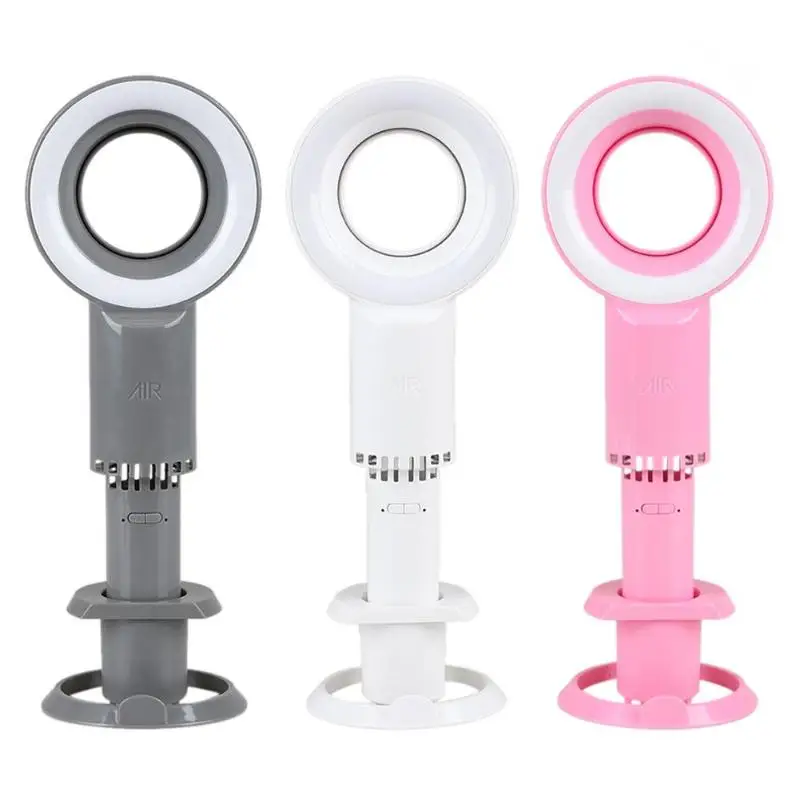 Portable Mini Leafless Fan Handheld 3 Speed Adjustable USB Charging Air Cooling Fan with Beauty Lig
